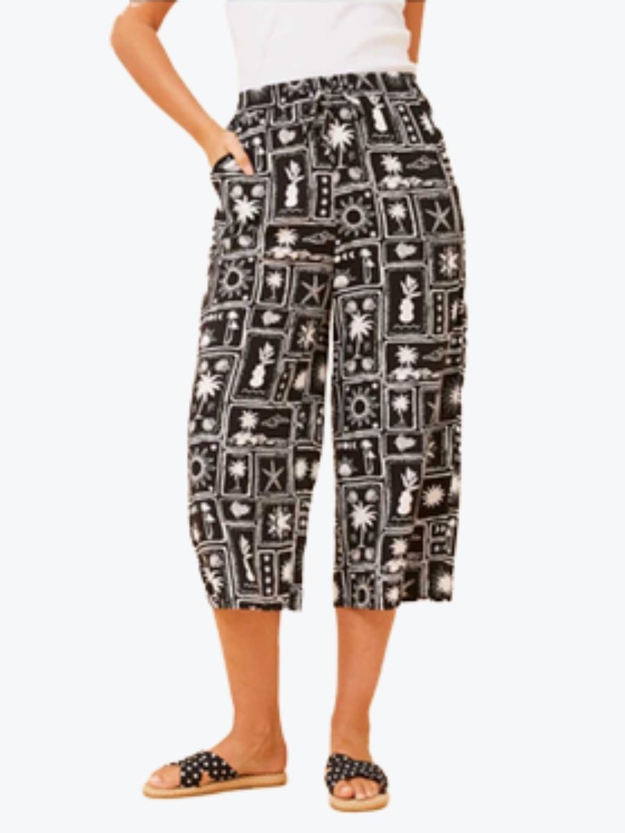 These are the best value warm season pants around! The 7/8 Pants from Caroline K Morgan feature a relaxed fit and cropped wide leg silhouette, designed to flatter and flow. The elasticated waistband with adjustable drawstrings ensures all-day ease, while functional side pockets add practicality to the charm. Pair with a tank or tee and your favorite sandals or sneakers for a look that’s effortlessly chic.