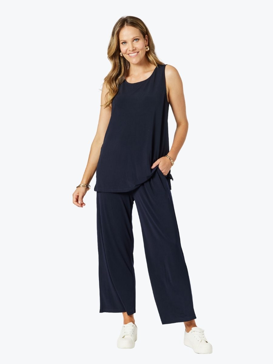 The Travel Jersey Wide Leg Pants from Clarity are designed with the modern traveler in mind. Crafted from soft jersey fabric, they offer all-day comfort with a flattering high-rise fit and effortless pull-on style. Their fluid wide-leg silhouette delivers relaxed ease with a polished finish, making them the ideal companion from takeoff to your evening plans.