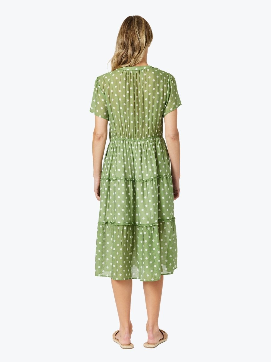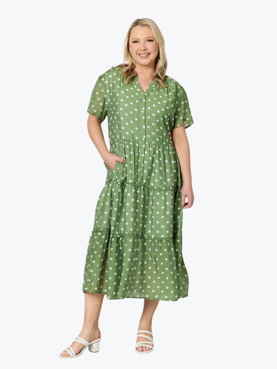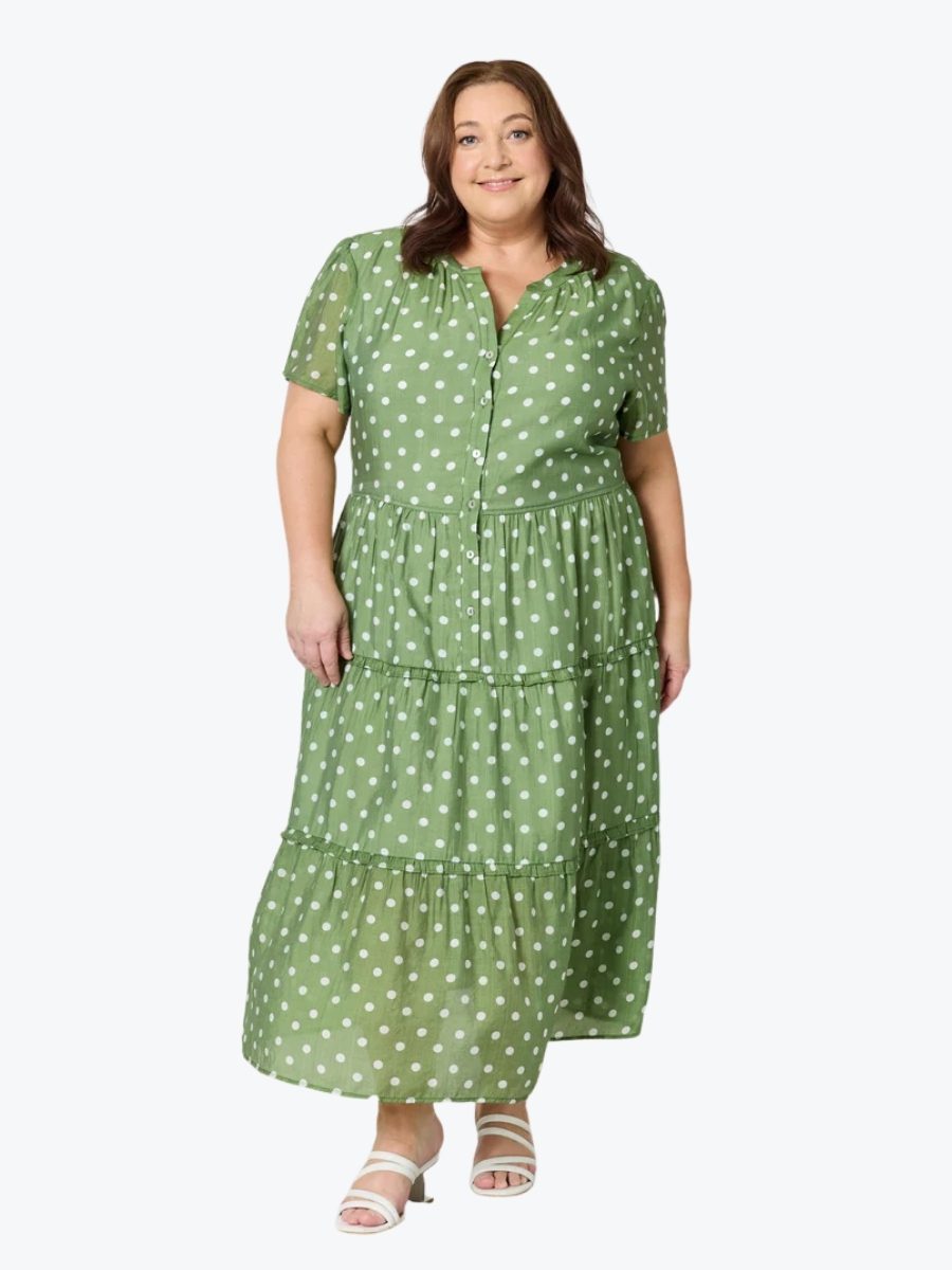 A fresh take on everyday elegance, the Basil Spot Midi Dress from Gordon Smith brings playful charm to a timeless silhouette. Crafted in our signature Gordon Smith style, this dress features a soft basil green base adorned with crisp white spots – a subtle nod to fun without compromising sophistication.