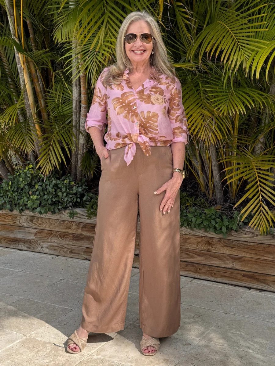 Designed for comfort and style, the Lino Wide Leg Pant blends relaxed polish with everyday practicality. Crafted from Gordon Smith’s known and loved soft linen blend fabric, its ankle-length, wide-leg silhouette offers breathable comfort and graceful flow – perfect for warm days and effortless styling. The pull on flat front waistband and belt loops create a clean, tailored finish, while the elasticated back ensures all-day wearability. With functional side pockets and lightweight versatility, it’s your go-to for travel, casual outings, or dressing up with a statement top.