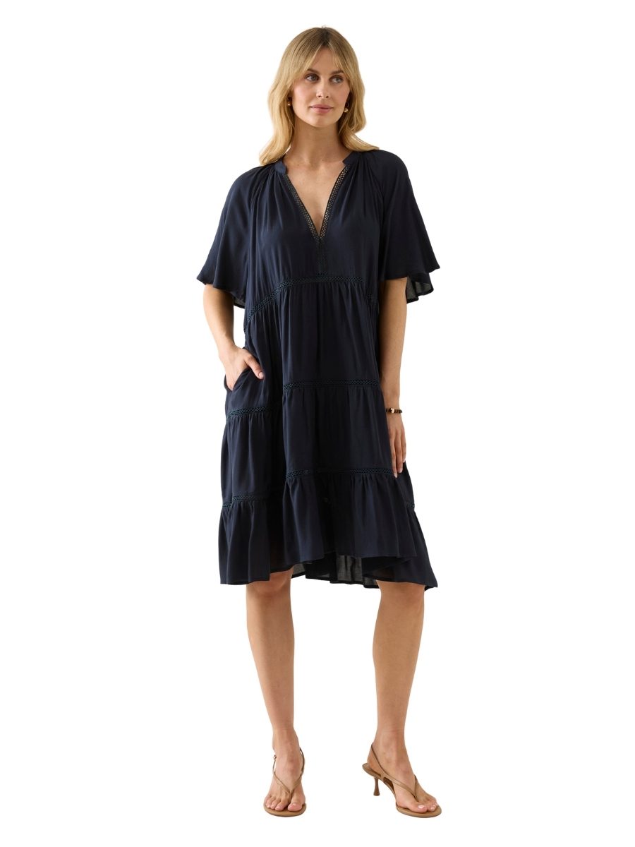 Designed for sun-soaked days and spontaneous plans, the Oline Dress from Isle of Mine blends comfort with effortless style. Featuring a flattering A-line silhouette, soft gathering at the neckline, and three gently tiered panels trimmed with subtle detailing, it’s crafted for movement and ease. The midi length and internal side pockets make it as practical as it is pretty – perfect for beach strolls, brunches, and everything in between.