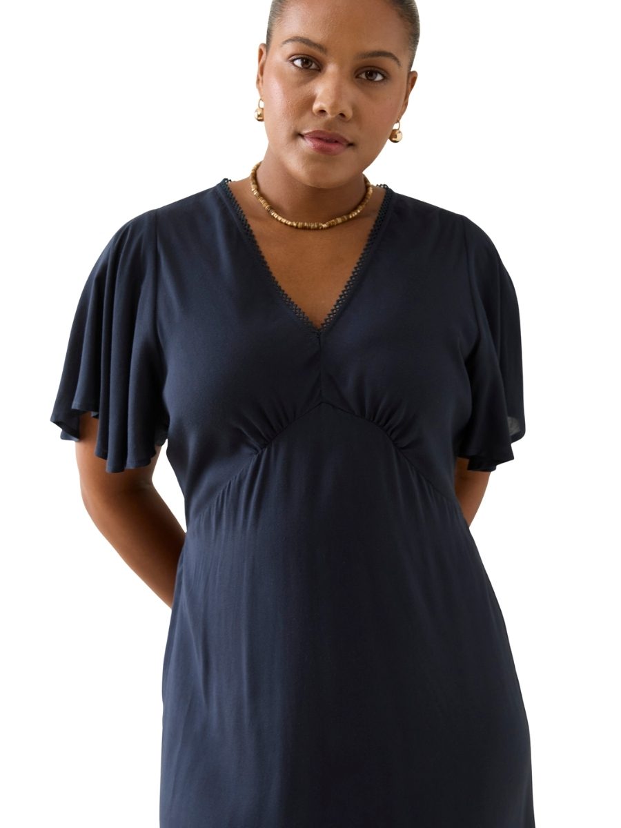 Feminine, functional, and effortlessly flattering – the Oline Midi Dress from Isle of Mine is designed for easy elegance. Featuring a gathered bust, adjustable waist ties, and soft flutter sleeves, it offers a graceful silhouette that moves with you. The midi length and V-neckline with delicate trim make it a versatile choice for everything from brunches to evenings out.