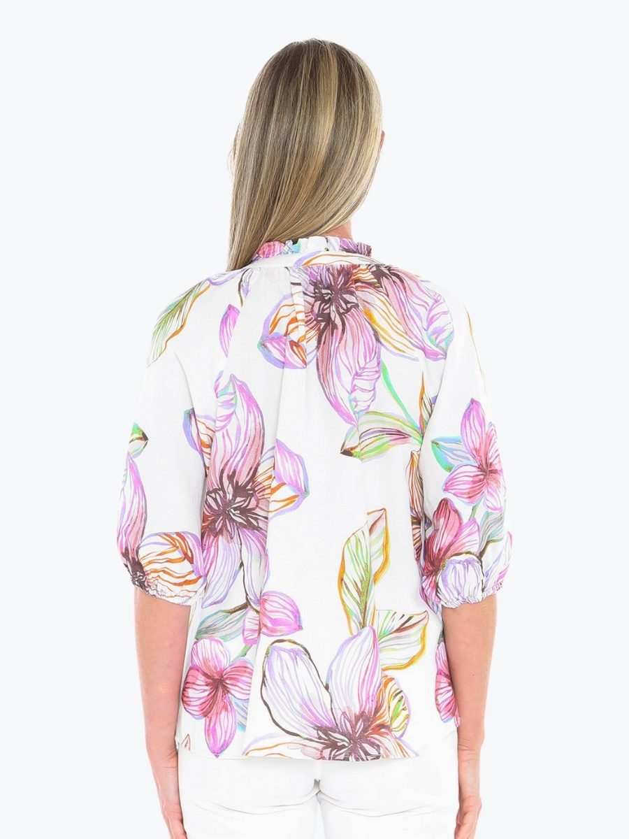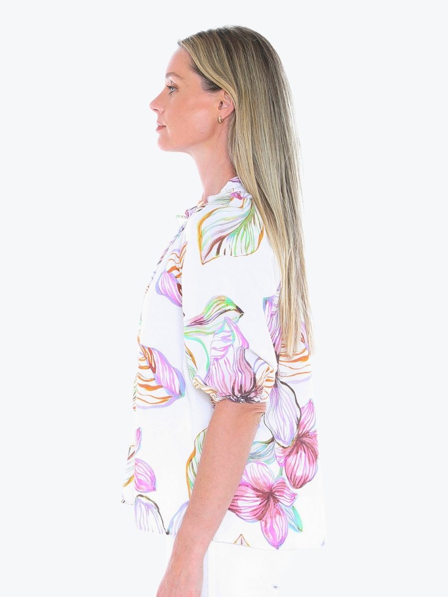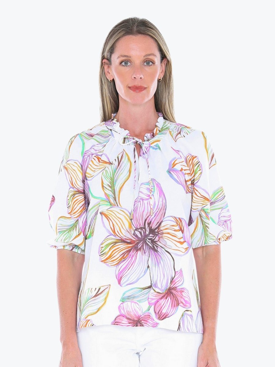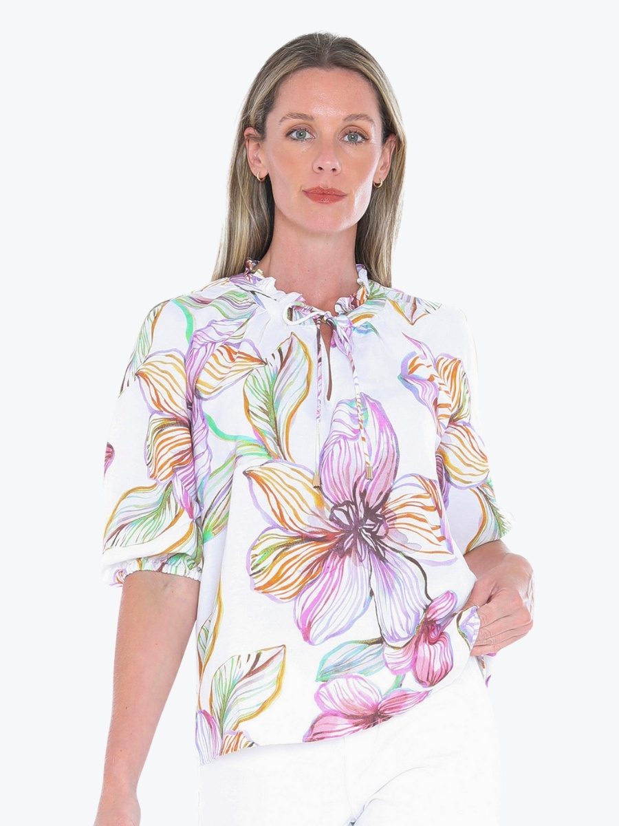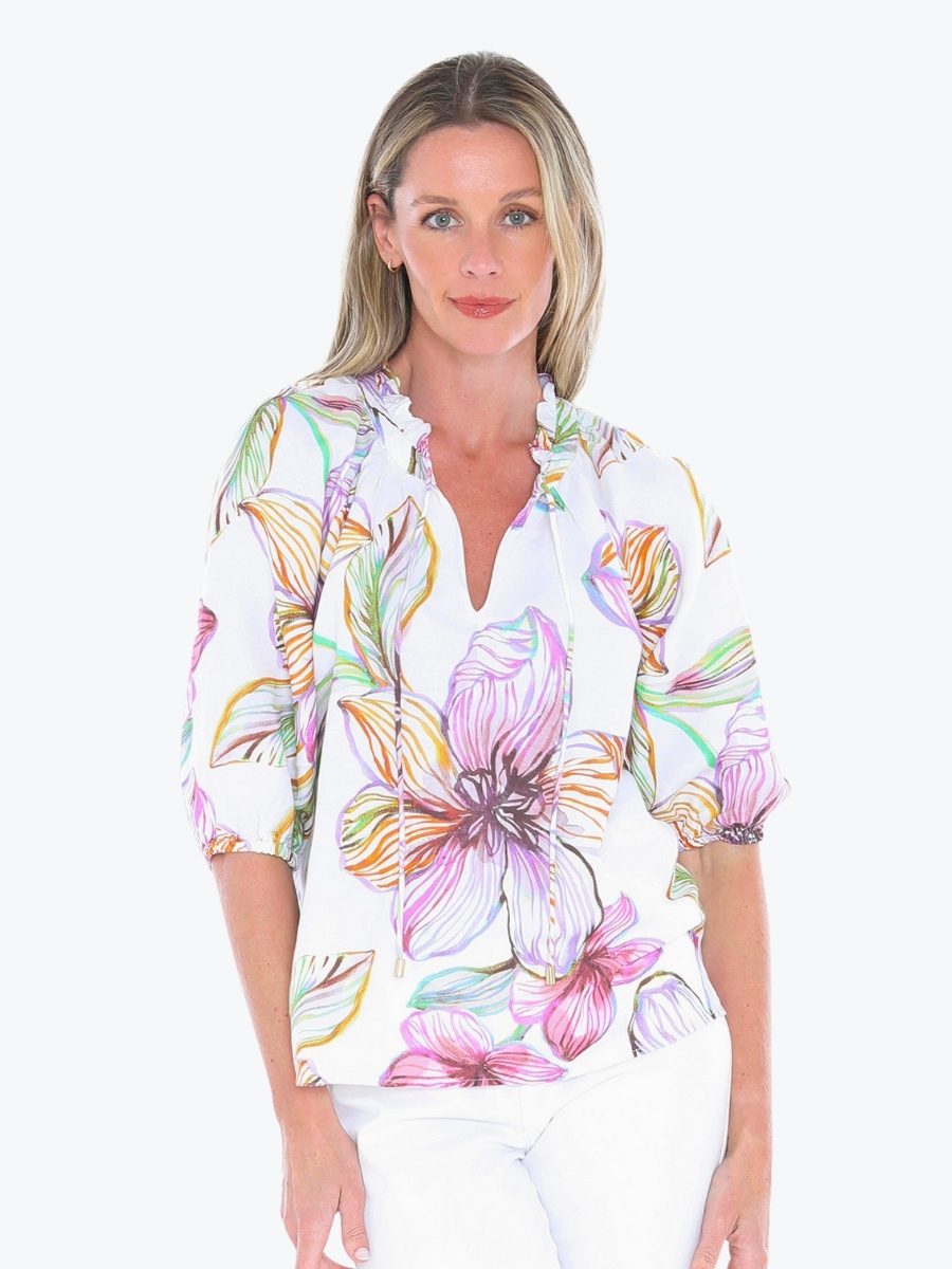Add a touch of romance to your wardrobe with the Floraline Top from Jump. This vibrant blouse brings effortless charm to everyday dressing. It is crafted from Jumps’ quality linen/viscose blend fabric which feels lovely on the body, and is in the new and exclusive stunning Floraline print. It has a relaxed silhouette to keep things comfortable and flattering, with the split V-neckline with delicate tie and ruffle trim adds feminine flair. Leave the neckline open for a more relaxed vibe, or do up the tie for greater coverage. To give a contemporary edge there are elbow-length raglan sleeves with soft elastic cuffs. Pair the Floraline Top with crisp white pants or your favourite denim – this top is made for sunny days and spontaneous plans.