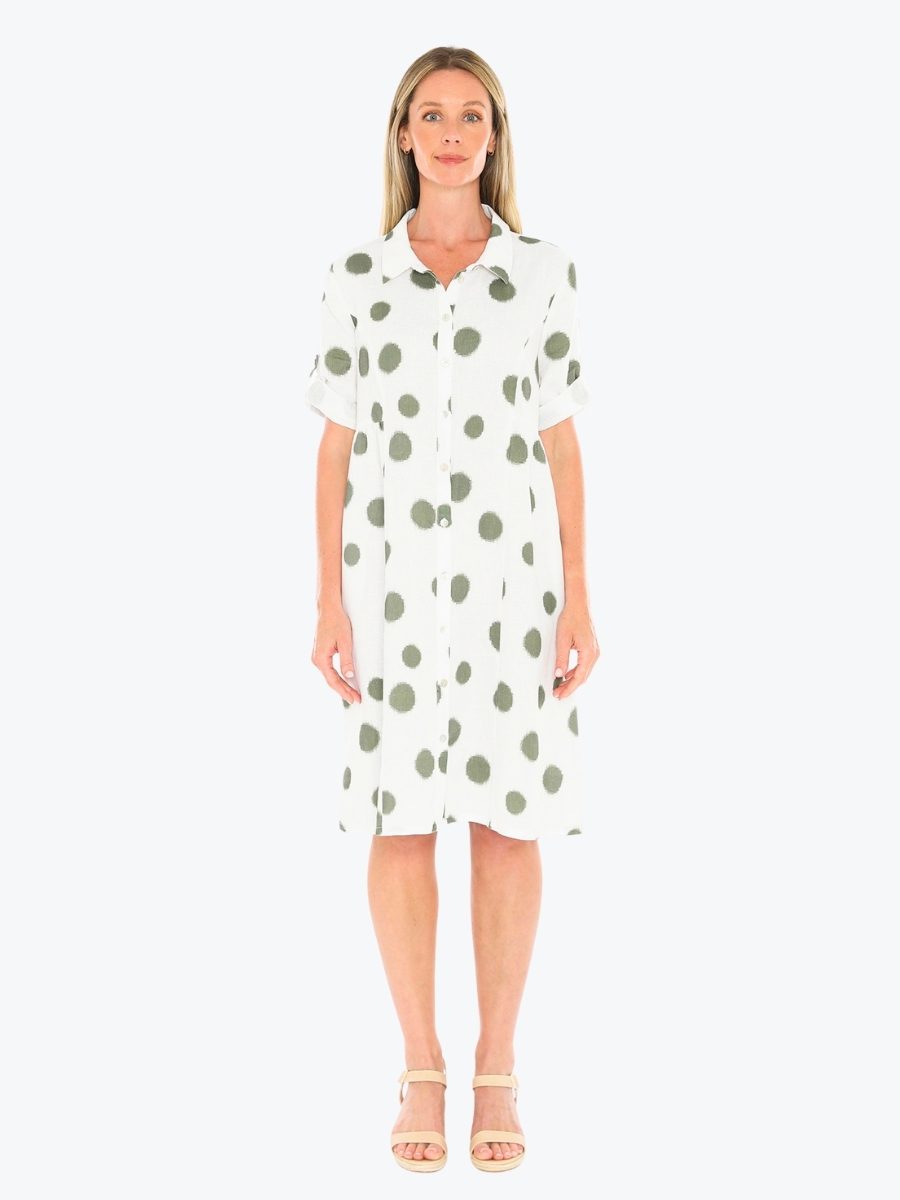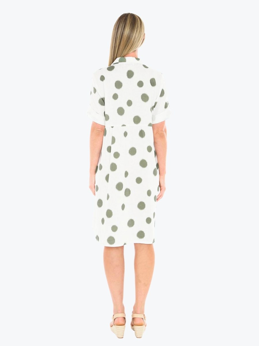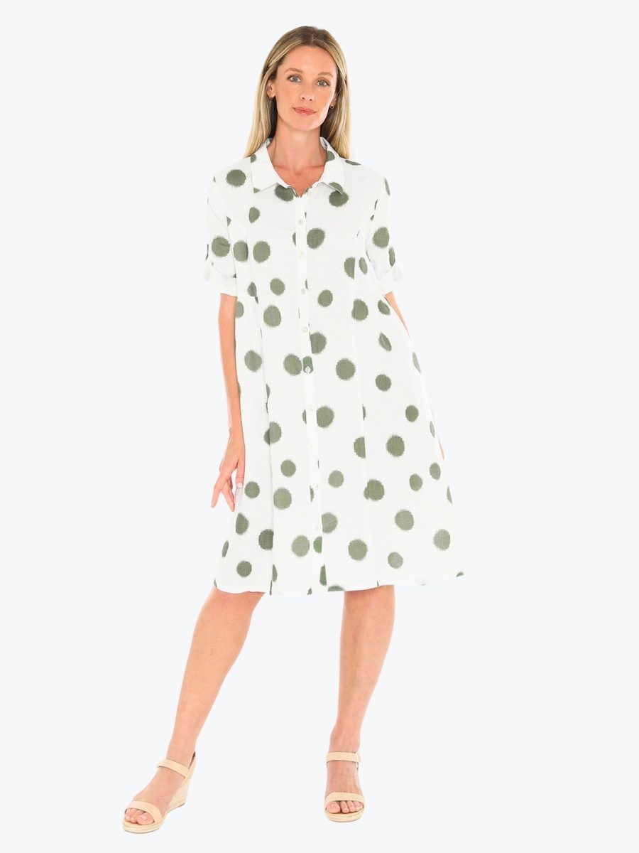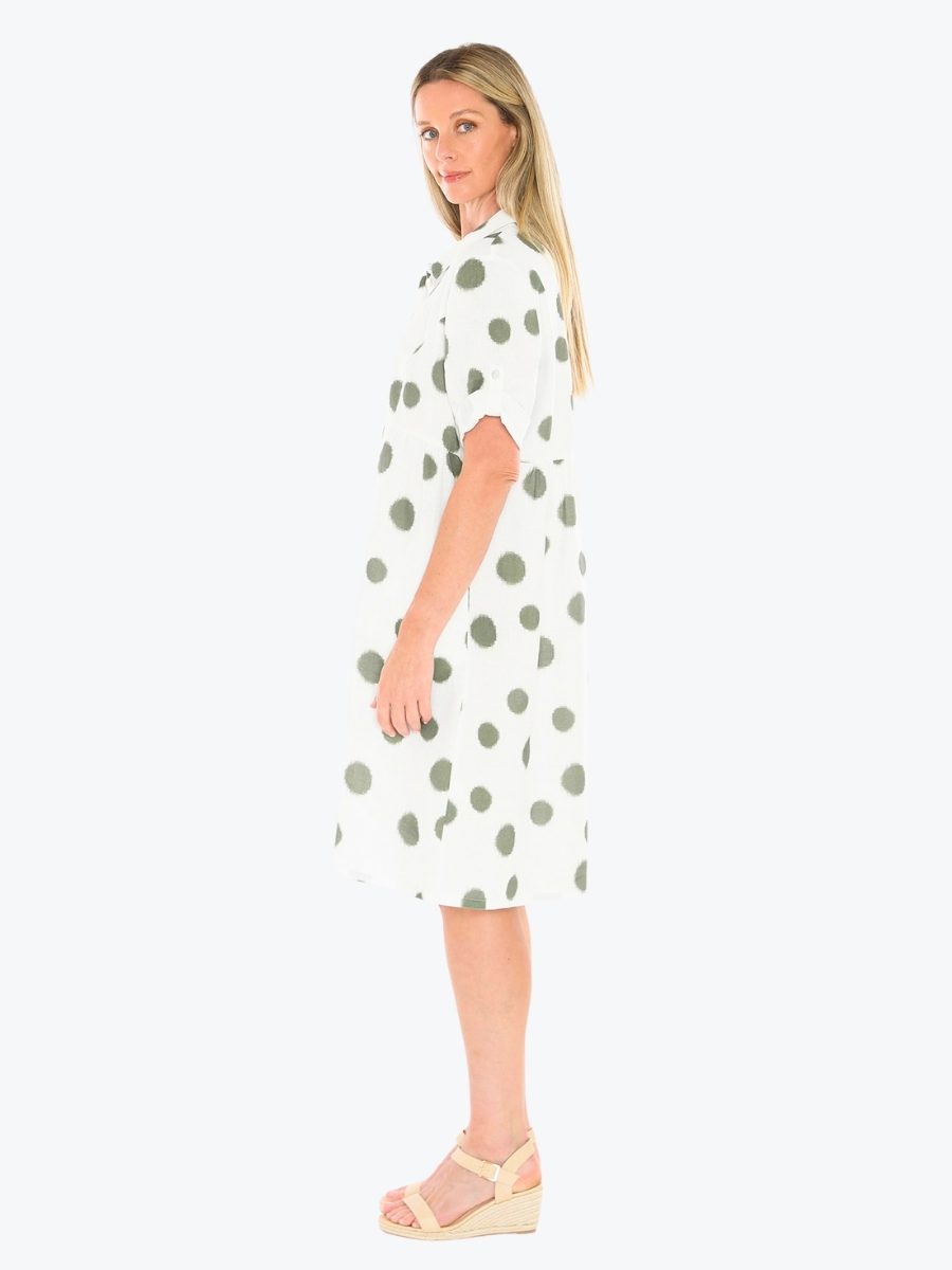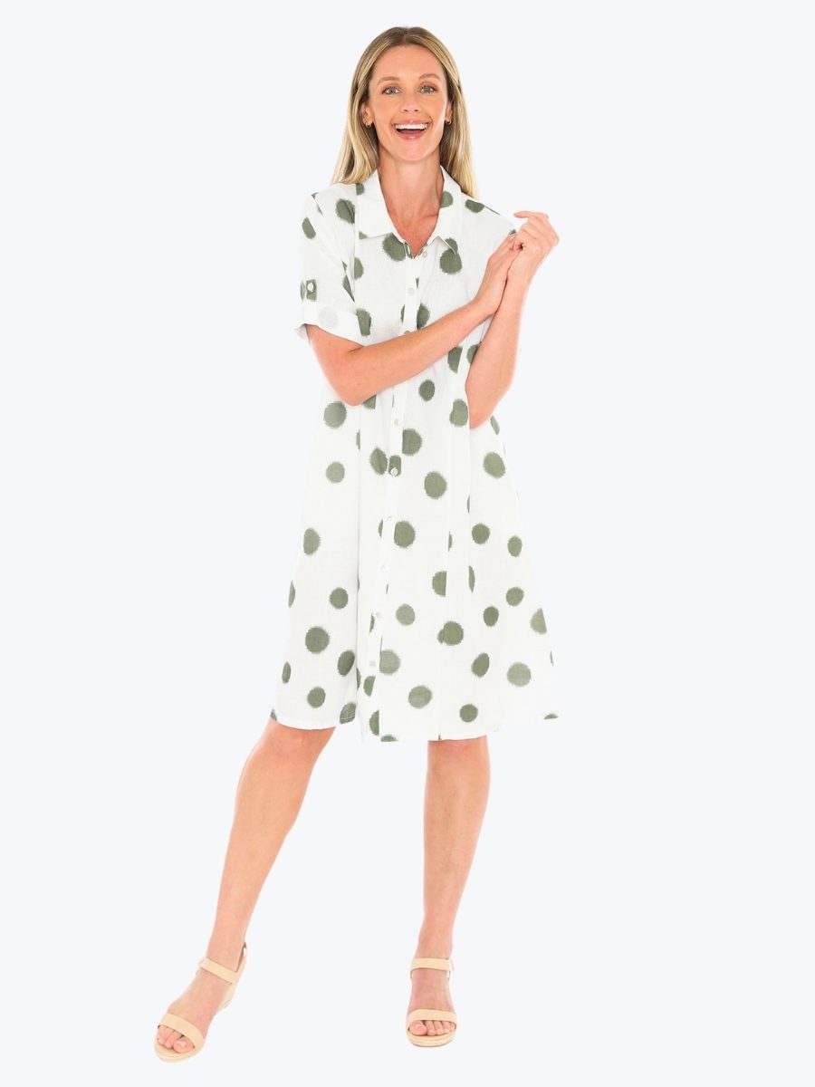 Where playful meets poised. The Scratch Spot Dress from Jump brings a modern twist to everyday dressing, with abstract dots that dance across soft, breathable 100% linen fabric. This is a button through to the collar dress, with the relaxed silhouette and rolled sleeves offering laid-back polish. This dress is designed to be around knee length on most. From weekday errands to weekend brunches, this dress is your throw-on-and-glow essential – easy, expressive, and endlessly wearable.