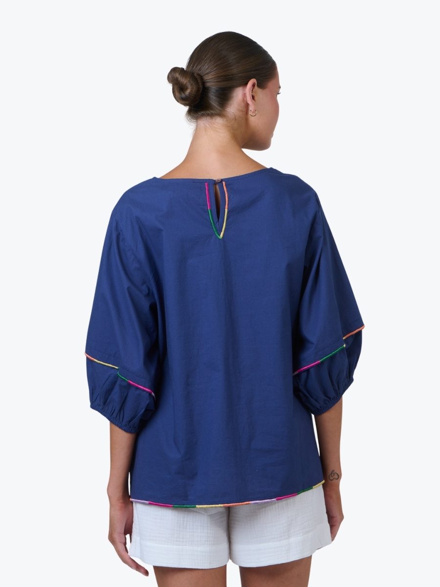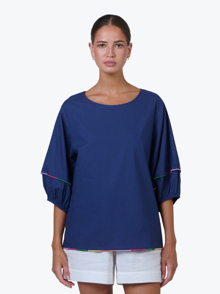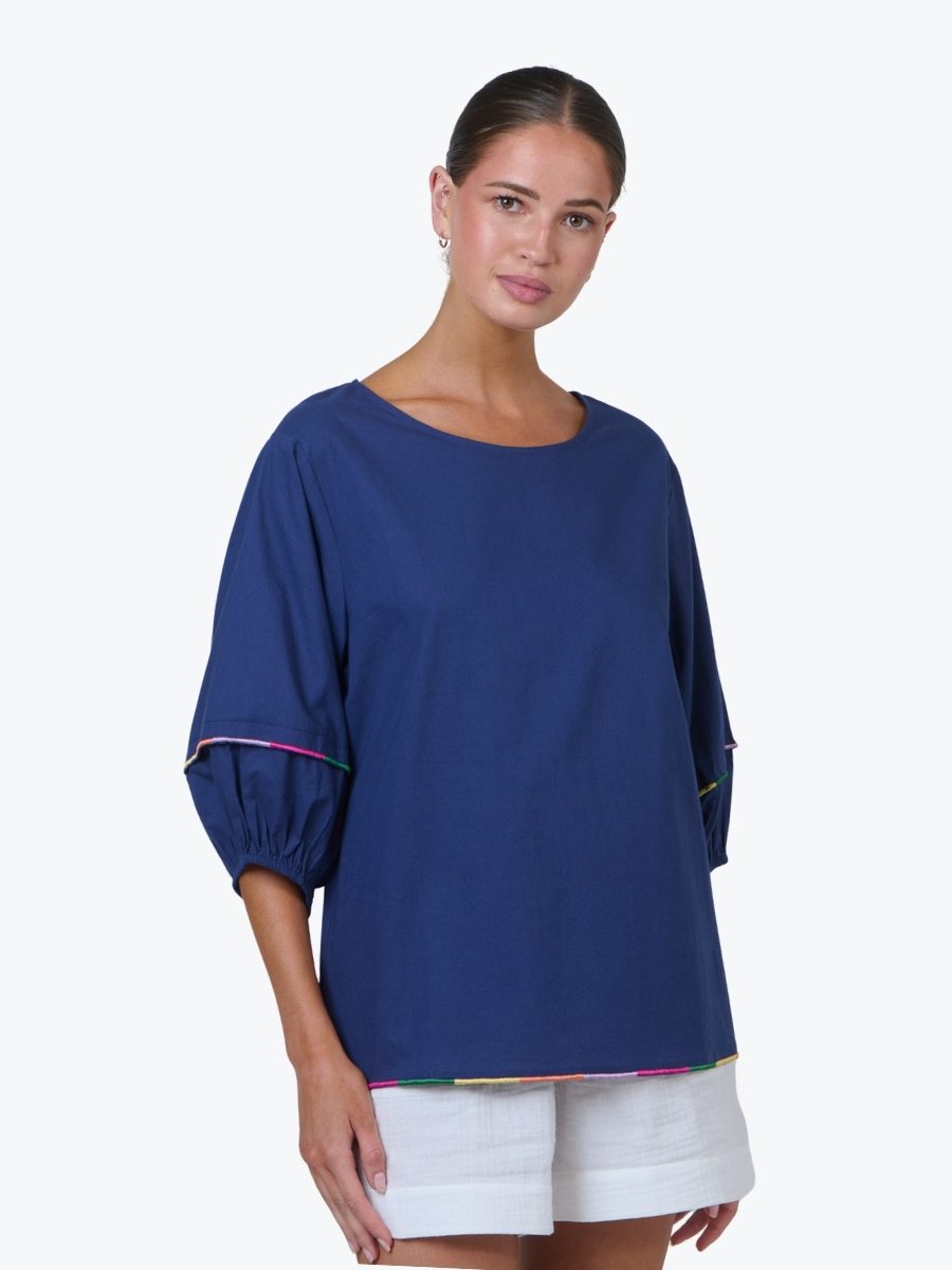 Ready to elevate your everyday style? The Puff Sleeve Top from Namastai is that piece of effortless polish you’ve been searching for. It’s sophisticated, flattering, and designed for women who know great style doesn’t have to be complicated. The beautiful navy base provides a perfect canvas, but it’s the playful multicoloured trim detailing that makes all the difference – it adds a vibrant, chic touch of artistry right where you want it.