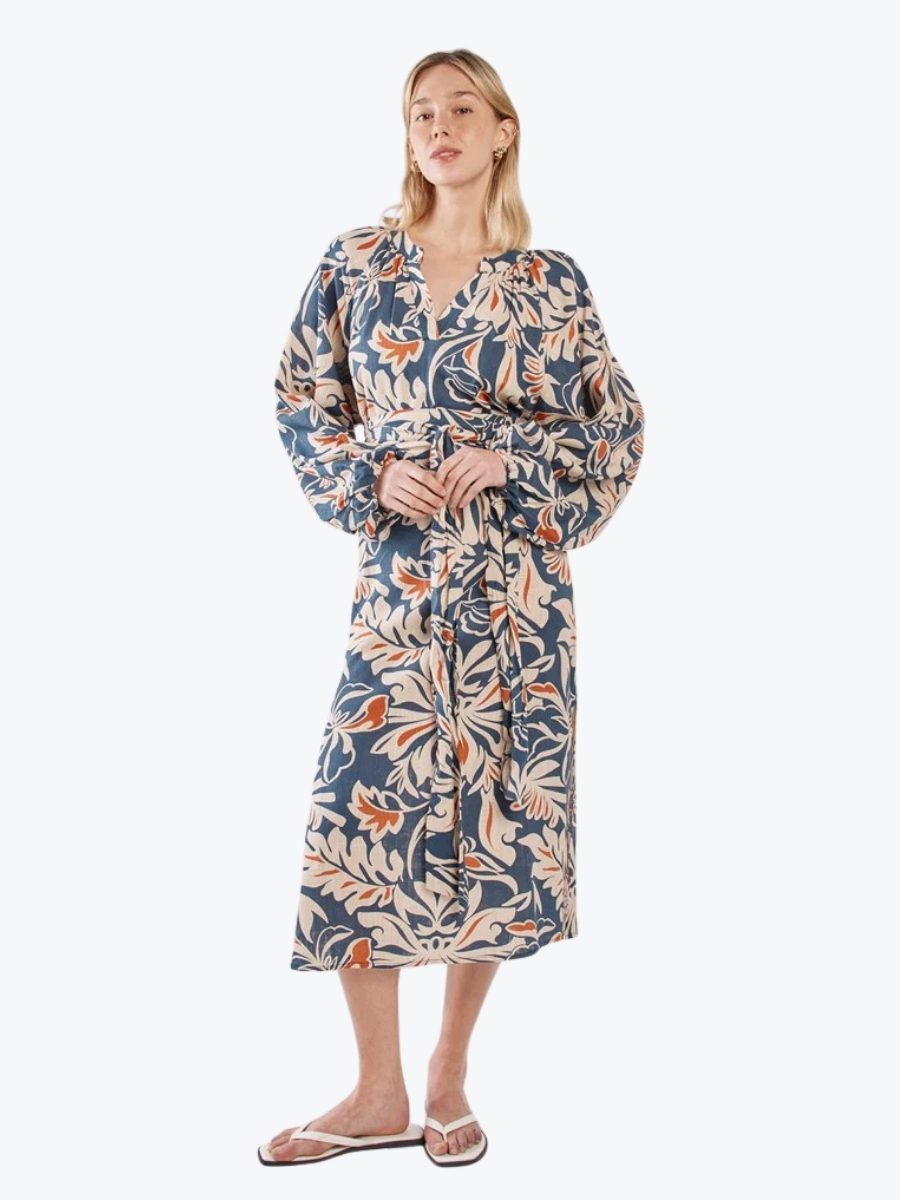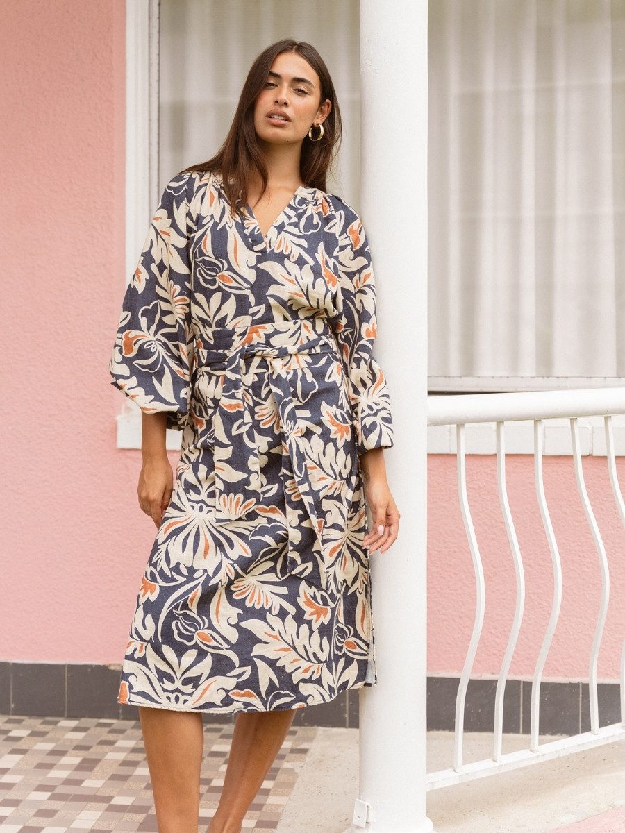A modern silhouette with timeless ease, the Jana Obi Belt Dress from Sass is your on-trend warm-weather essential this season. Crafted for comfort and movement, it features flowy raglan sleeves with a soft bellow hem and elasticated cuffs for subtle structure. The wide self-fabric belt cinches the waist with elegance, offering shape without restriction. Side splits add a touch of airiness, making this dress as breathable as it is beautiful. It is crafted from the exclusive Wild Orchid print, in a soft viscose/linen blend fabric. Whether you’re styling it for casual or more refined occasions, it’s relaxed dressing with a contemporary twist.
